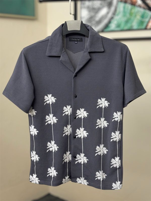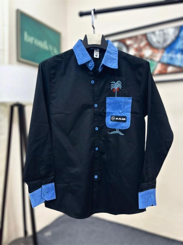 Tree Embroidery Full Shirt Black