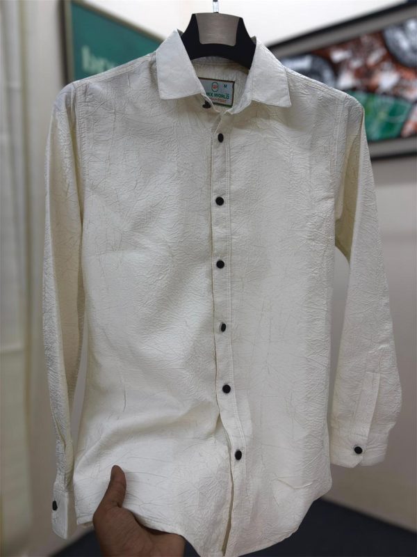 Flower Embroidery Full Shirt White